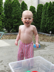 Don't have a fancy outdoor water table for your little one?? No worries. Make one yourself. It's really a no brainer but I thought I would share.
